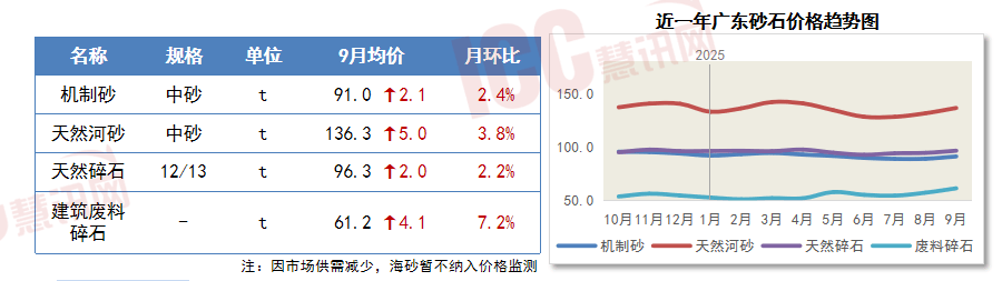 2025年9月,但珠三角区域砂石消费需求规模较大加之节前备货推涨,8-9月份期间。